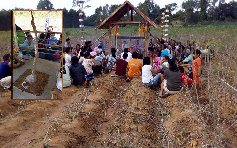 เมื่อวันที่ 15 มกราม นางใหญ่ คำลำ อายุ 50 ปี อยู่บ้านหนองเรือ หมู่ 1 ต.หนองน้ำใส อ.วัฒนานคร จ.สระแก้ว เล่าว่า เมื่อวันที่ 7 มกราคม 2560 ตนได้เข้าไปในไร่มันสำปะหลังที่ปลูกไว้ ห่างจากหมู่บ้านไปทางทิศเหนือประมาณ 500 เมตร เพื่อถอนหญ้า และวัชพืช เมื่อเดินไปที่บริเวณกลางๆ ของไร่มันสำปะหลัง ได้เห็นจอมปลวก ก่อตัวขึ้นตรง มีลวดลายสวยงาม มีขนาดเท่าแขน ที่ปลายแผ่ออกเหมือพญานาค สูงประมาณ 150 เซนติเมตร มีลักษณะแปลก จึงได้ไปบอกนายสุข คำลำ น้องชาย ให้มาดู ต่อมาในวันที่ 8 มกราคม 2560 ได้มีชาวบ้านพากันแห่มาดู และได้เอาแป้งมาลูบเพื่อหาเลขเด็ด ทำให้ที่ปลายยอดของจอมปลวก ที่แผ่ออกมามีลักษณะคล้ายพญานาค หักลงมา และได้เก็บไว้ที่โคน จอมปลวก ต่อมา เห็นว่ามีคนเข้ามาเพื่อหาเลขเด็ด เป็นจำนวนมาก ทำให้ไร่มันเสียหาย จึงได้ ทำศาลาและทำคอกกันไว้ไม่ให้ชาวบ้านนำแป้งไปลูบ แต่ให้จุดธูปเทียนบูชาอธิษฐานขอเลขเด็ดที่ด้านนอก แทน
